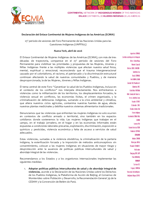 Statement by the Continental Network of Indigenous Women of the Americas (ECMIA)