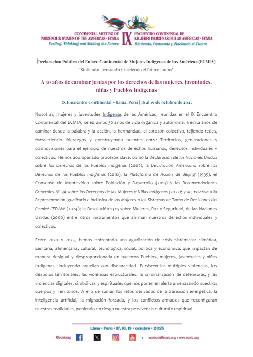 Declaración ECMIA - 67a Reunión de la Mesa Directiva de la Conferencia Regional sobre las Mujeres de América Latina y el Caribe, y la sesión especial de consulta regional previa a la CSW70